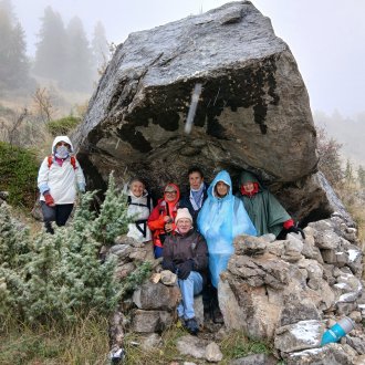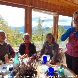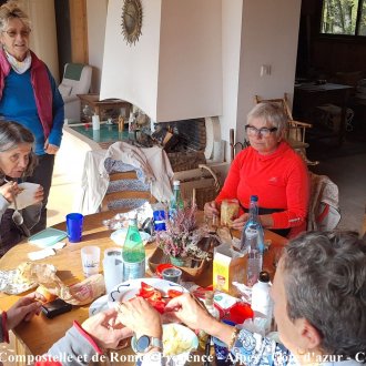 Malgré la météo qui était un début d’hiver, nous sommes montés à huit participants à la carrière de Salados. Dans le brouillard et les premiers flocons de neige, nous avons admiré le lion de Salados. Nous avons pris le repas sorti du sac au chaud avec un joli feu de cheminée et une vue magnifique sur le lac de Serre-Ponçons..