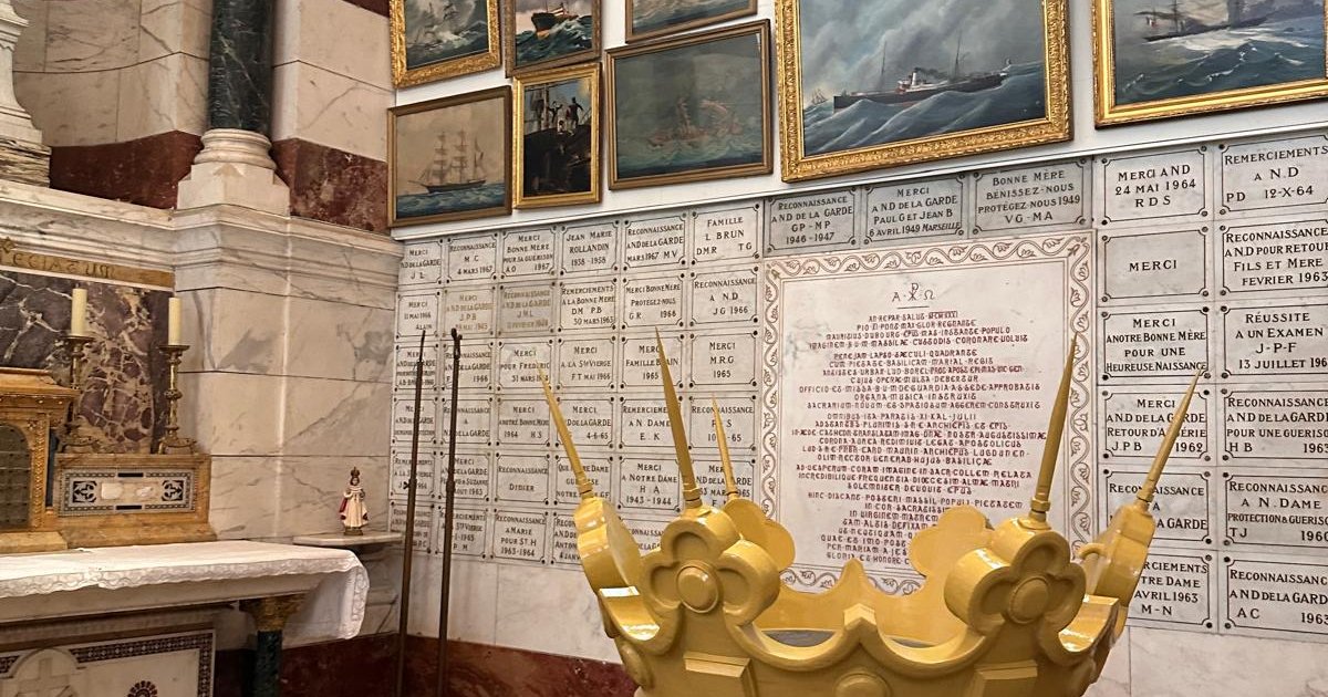 Lors de l'AG Compostelle France, les accompagnants ont eu la chance extraordinaire d'approcher la couronne de la Bonne Mère de Marseille, couronne déposée pour restauration et qui reprendra sa place dès le 17 octobre.