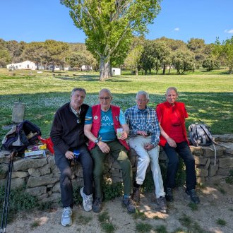 Nous étions 18 pour nous lancer à 10h00 sur une promenade de 6 kms tracée par Gardy et Michèle. Nous l’avons parcourue à la vitesse des légionnaires sans être pour autant « au pas ». À 12h30 nous prenions un apéritif bien mérité ! Partage de nos douceurs et des vins.